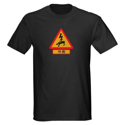 On the sign you can read the Korean original word for danger. Funny Tee, TShirt, Shirt. About our Dark T-Shirt: Look cool without breaking the bank. Our durable, high-quality, pre-shrunk 100% cotton t-shirt is what to wear when you want to go comfortably casual. Preshrunk, durable and guaranteed.5.6 oz. 100% cotton. Standard fit..Available at Amazon Check Price Now!