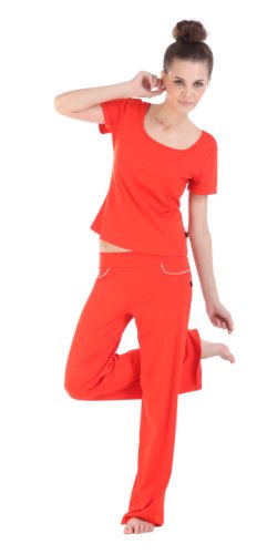Korean fashion styles Yoga fitness sportswear 2sets(Short sleeve with Drawstring T-shirt+Pants) Style No.#T83107+T99107 Parts Include: total 2sets 1)Shirt: Short sleeve with Drawstring T-shirt in Red color, (without chest pad)2)Bell-bottomed pants in Red color+White line Fabric Composition:Fabric is 92% Nylon + 8% Lycra(also named Supplex marterial) Fitness programs: yoga dance / aerobics fitness equipmentFunction: Moisture / Perspiration / Drying / Breathable / Super flexible Yoga size table Reference Size Body High(CM) Body weight Bust(CM) Waistline(CM) Hip(CM) (Long)Pants Length(CM) M 150~160 ?48KG 82~86 64~67 84~88 Physical 96 L 155~165 ?55KG 86~92 70~76 88~94 Physical 99 XL 165~175 ?60KG 90~98 76~84 92~100 Physical 102 Size Buying Guide(Example) Fitting model Body High(CM) Body weight Fitting Size Fitting effect Lily 155 43 M Fit Susan 163 48 L Fit Jenny 174 58 XL Fit Washing Instructions: our Yoga clothing Fabric is 92% Nylon + 8% Lycra(also named Supplex marterial) 1. Before washing, do not put clothes on a long soak in water with-detergent to avoid discoloration or deformation of clothing 2 dry naturally, do not use dryer 3 washing in water does not exceed 30 degrees, add the right amount of neutral detergent -(in addition to drift outside the white agents), dissolve and mix thoroughly, soak for 5 minutes, then gently massage the stain area, wash with water(Hand washing) 4 different colors to separate the washing, to avoid staining clothing is dry, do not fold 5 glue stains, oil stains or water, sweat, wet, wash as soon as possibleAvailable at Amazon Check Price Now!